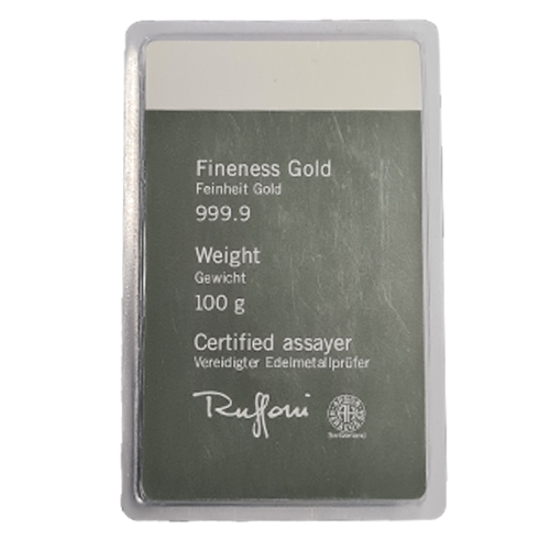 Fine weight 100 grams, minted with certificate, fineness 999.9/1000 Good Delivery.