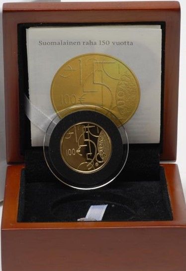 Die Finnische Mark wurde 1860 als offizielle Währung eingeführt. Zum 150-jährigen Jubiläum dieses Ereignisses wurde diese Münze geprägt. Bis zur Einführung des Euro im Jahr 2002 war die Mark die nationale Währungseinheit Finnlands.